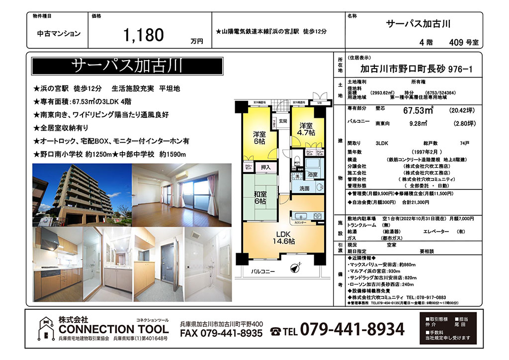 交通 山陽電鉄本線 高砂駅 徒歩1200m 徒歩15分