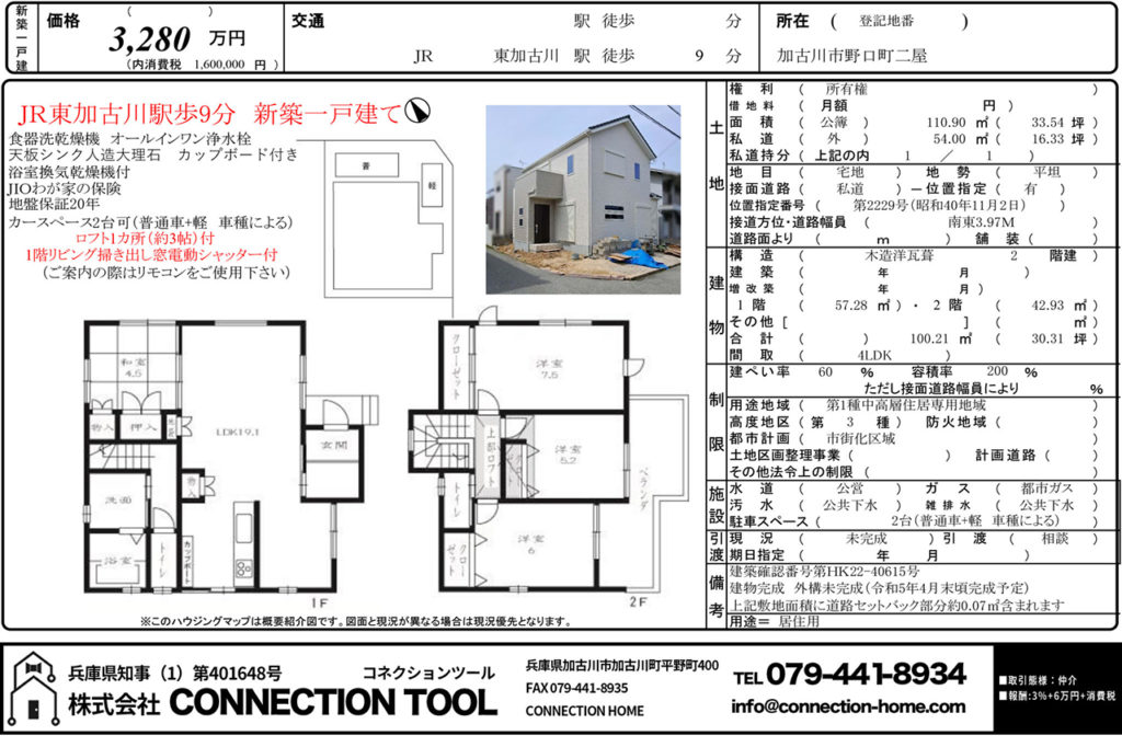 | 面積 | 57.28m² 土地 110.90m² | 建蔽率/容積率 | 60% / 200% |