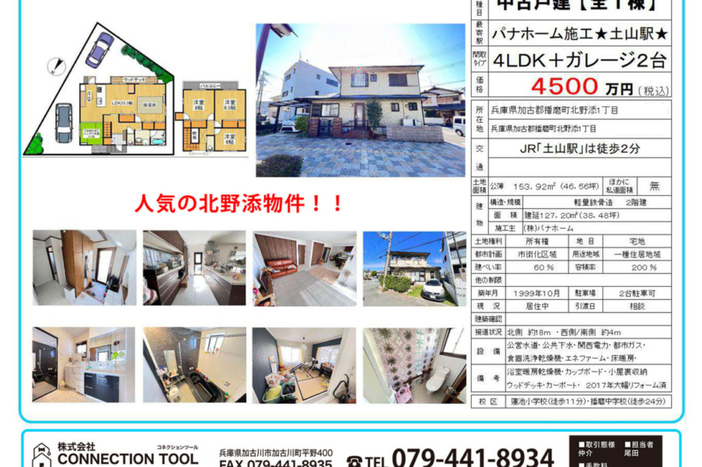 【売家戸】兵庫県加古郡播磨町北野添1丁目