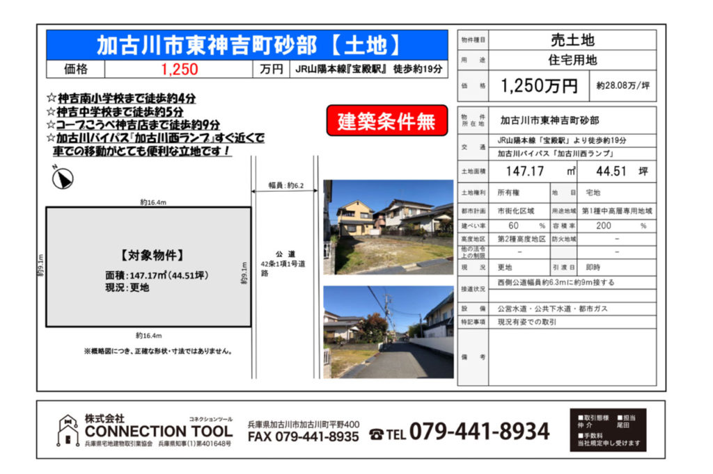 【売土地】加古川市東神吉町砂部