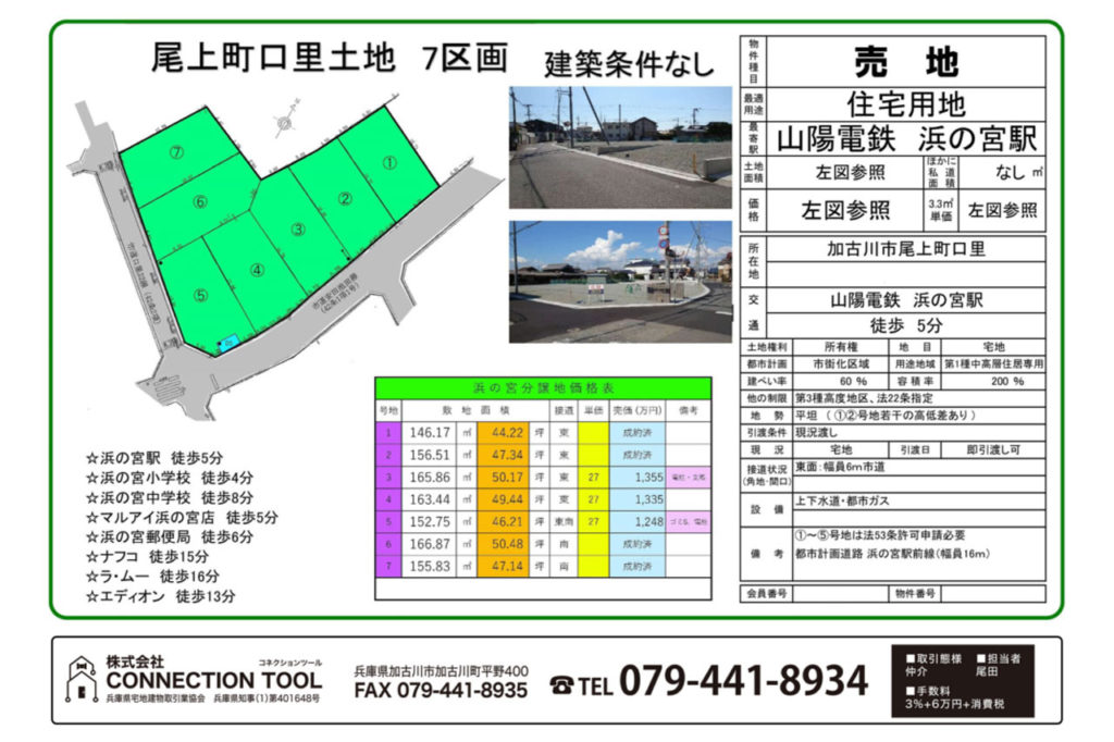 ◆尾上町口里土地7区画◆建築条件無し