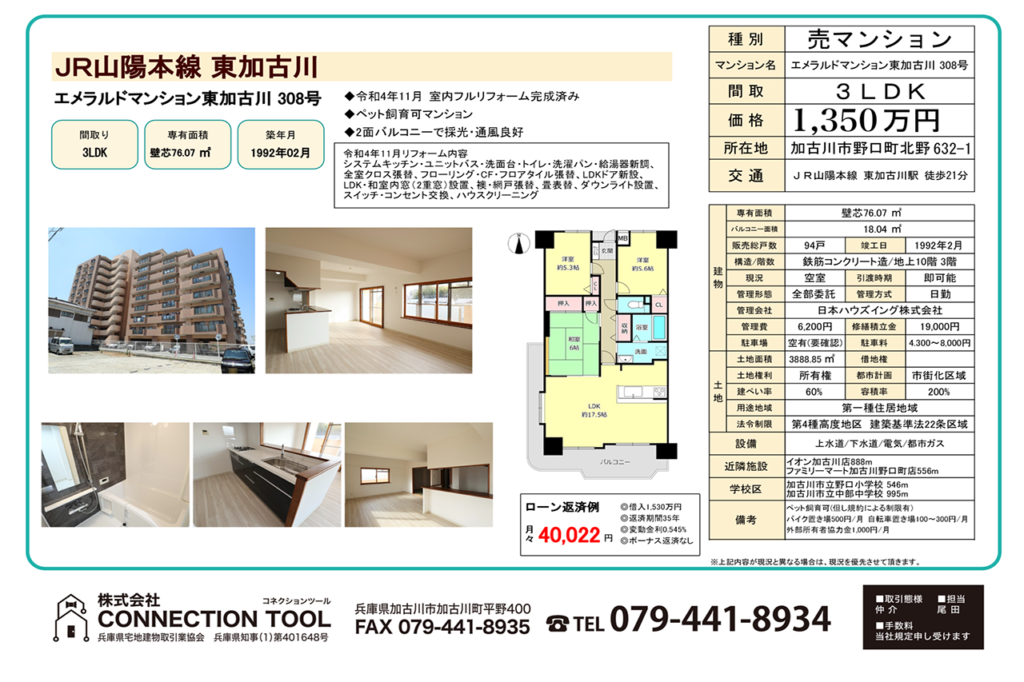 | 交通 | JR山陽本線 東加古川駅 徒歩21分 |