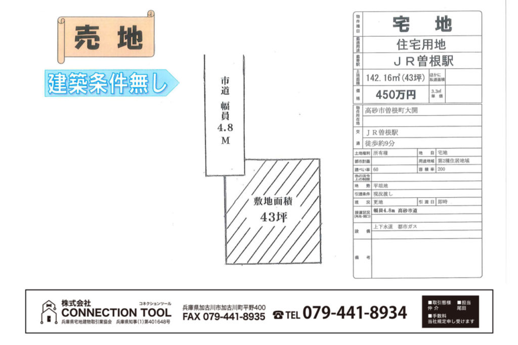 | 土地権利 | 所有権 | 接道状況 | |