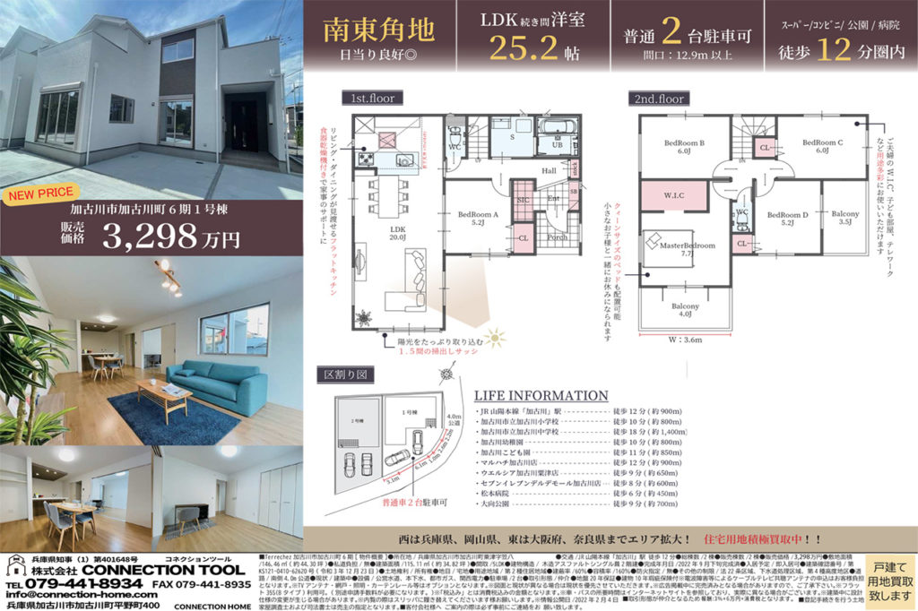 ◆南東角地日当たり良好◎◆LDK続き間洋室25.2帖◆普通2台駐車可間口:12.9m以上◆スーパー/コンビニ/薬局/公園徒歩12分圏内