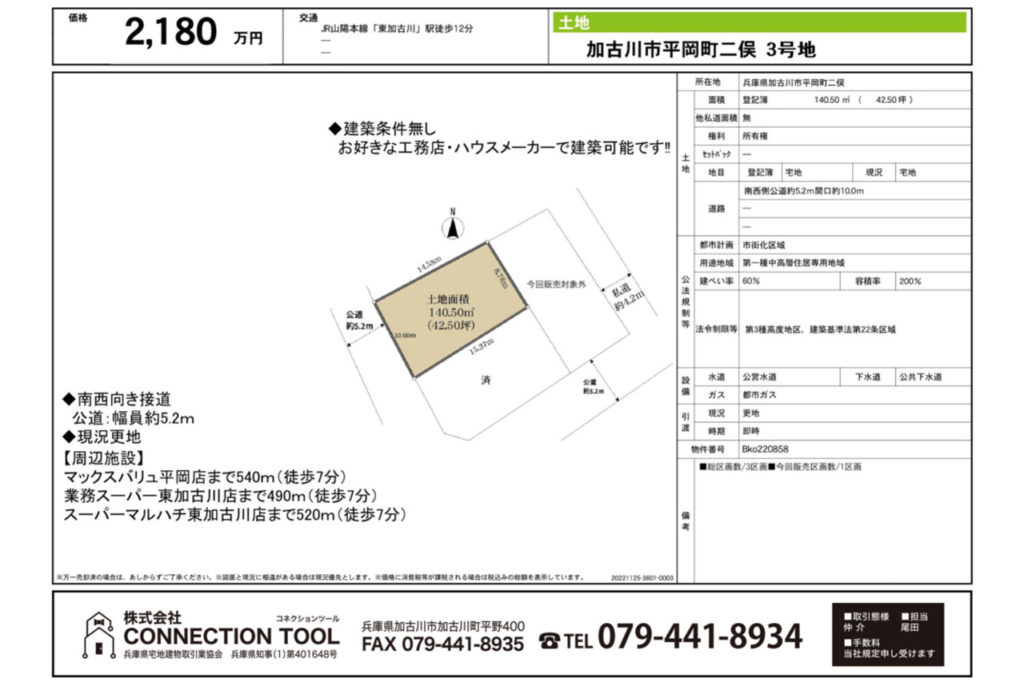 | 土地権利 | 所有権 | 接道状況 | |