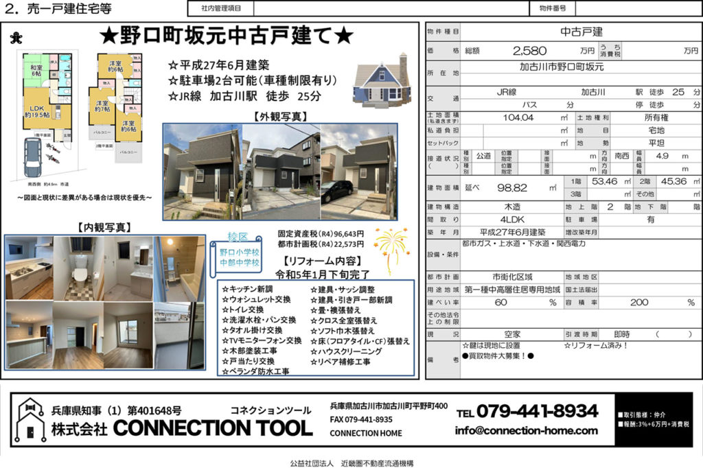 【売家戸】加古川市野口町坂元
