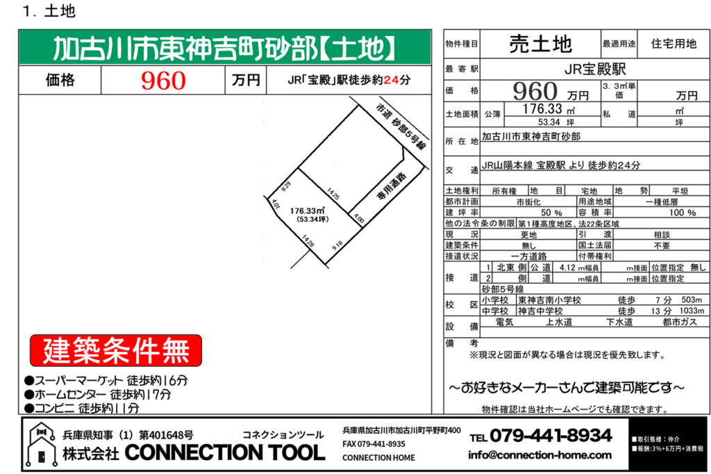 【売土地】加古川市東神吉町砂部